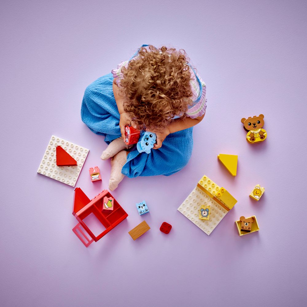 Os conjuntos LEGO DUPLO são uma ótima maneira de aprender brincando. Em meio à dramatização divertida e interativa, os pais podem usar as figuras de brinquedo para explicar às crianças a importância das rotinas. As crianças desenvolvem habilidades motoras finas enquanto montam os tijolos coloridos para construir os 2 brinquedos da casa. Cada rotina é codificada por cores para facilitar a construção.