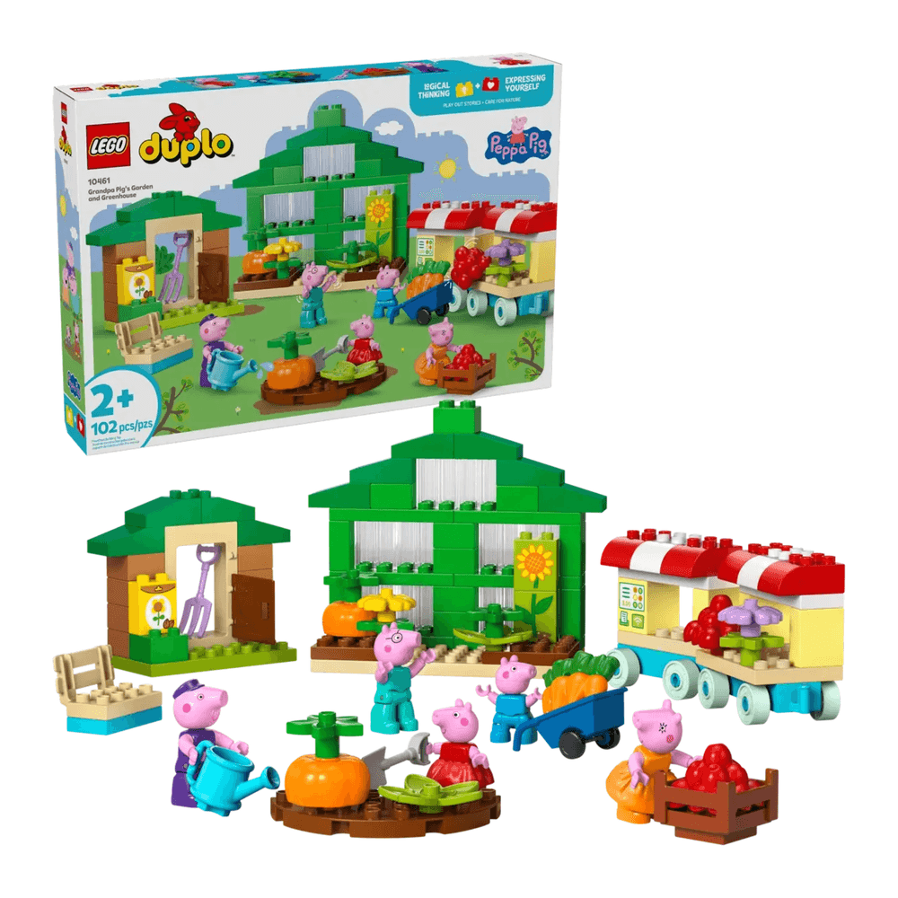 Dimensões – Este conjunto de aventura LEGO® DUPLO® Peppa Pig de 102 peças mede mais de 19 cm de altura, 60 cm de largura e 34 cm de profundidade.