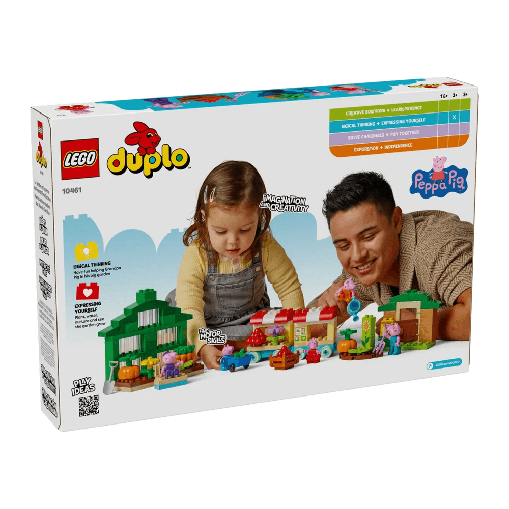 Mergulhe as crianças em brincadeiras criativas com o conjunto de construção Jardim e Estufa do Vovô Pig (10461). Este brinquedo natural para crianças a partir de 2 anos estimula a brincadeira imaginativa, enquanto as crianças em idade pré-escolar ajudam sua família favorita da TV a cultivar e colher os produtos do Jardim do Vovô Pig. Com 5 figuras – Peppa Pig, George, Mamãe Pig, Papai Pig e Vovô Pig – este conjunto de construção oferece às crianças muitas opções de brincadeira de faz de conta, enquanto aprimora suas habilidades pré-escolares.