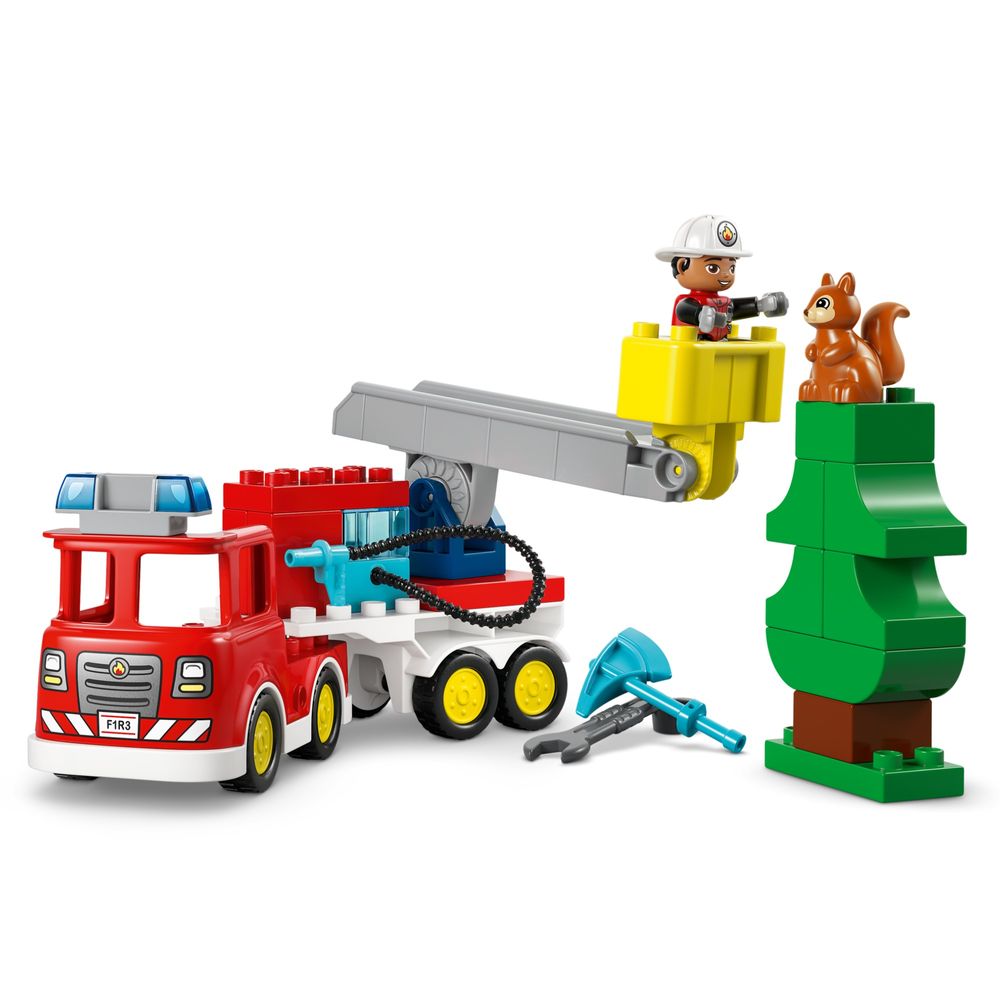 REPLETO DE RECURSOS DIVERTIDOS – Inclui um modelo de caminhão de bombeiros com reboque destacável, uma figura de bombeiro, um esquilo LEGO® DUPLO®, um machado e uma chave inglesa para incentivar brincadeiras imaginativas de salvar o dia.