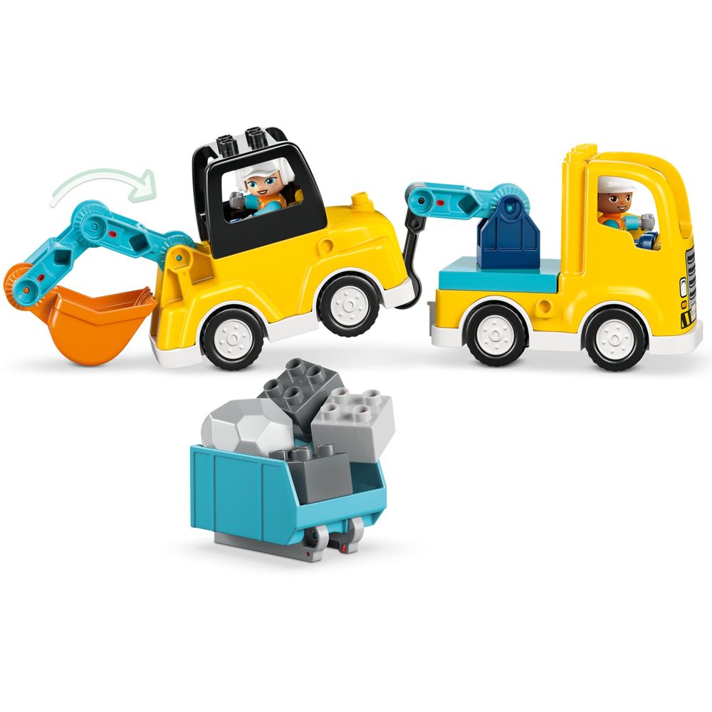 1 CONJUNTO, 6 VEÍCULOS DE BRINQUEDO – As peças deste conjunto LEGO® DUPLO® para crianças pequenas se encaixam para construir 2 caminhões de reboque com ganchos diferentes, uma carregadeira, uma plataforma elevatória, um caminhão basculante ou uma escavadeira de brinquedo com braço flexível.