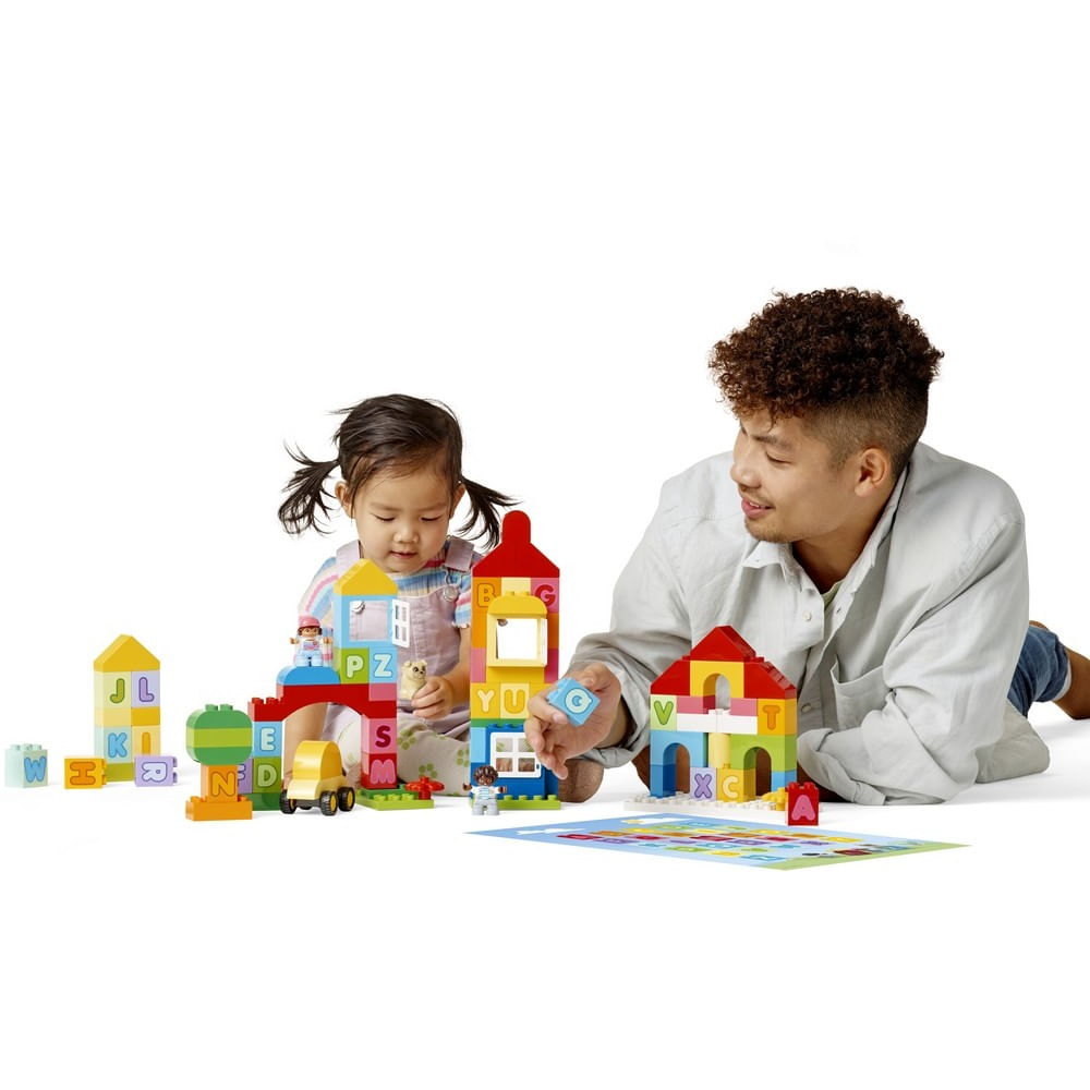 Em busca do melhor brinquedo para ajudar crianças pequenas a reconhecerem as letras? O brinquedo de aprendizagem LEGO® DUPLO® Classic Cidade do Alfabeto (10935) contém todas as letras do alfabeto, um carro para dirigir e as figuras de uma menina, um menino e um pug para horas de brincadeiras criativas. Este é o primeiro conjunto LEGO ideal que permite às crianças pequenas criarem e recriarem infinitos edifícios divertidos e coloridos.
