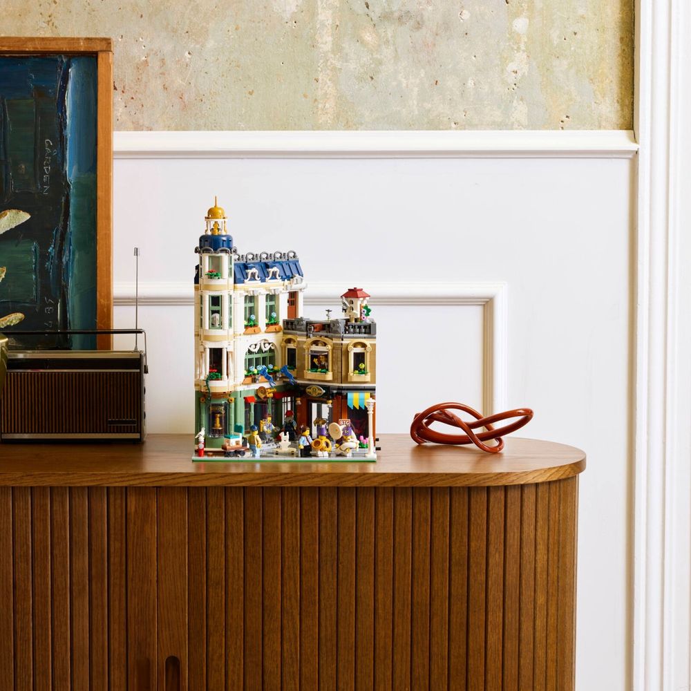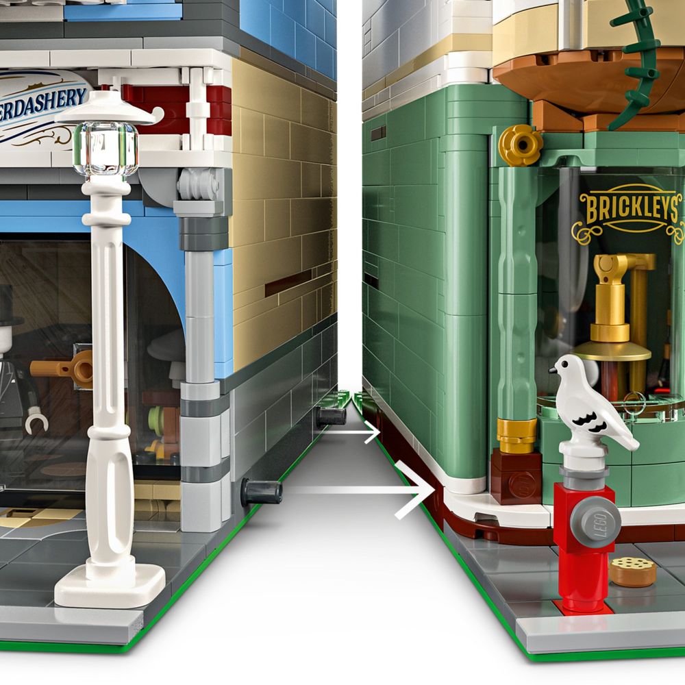 Conjunto LEGO® colecionável detalhado – Inclui uma loja de música com instrumentos de banda marcial, uma loja de móveis e um apartamento mobiliado, além de um jardim na cobertura e um beco central.