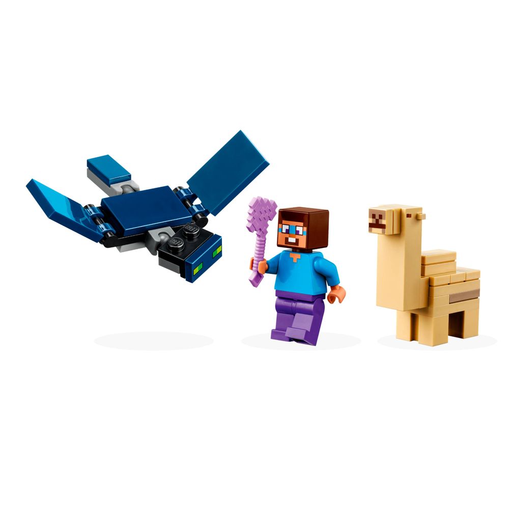 Brinquedo de construção com figuras do Minecraft® – Inclui uma minifigura do popular personagem do Minecraft, Steve, uma figura do Baby Camel (pela primeira vez!) e uma figura do Fantasma voadora com asas móveis