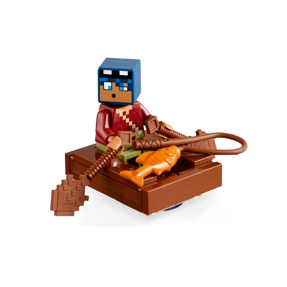 Brinquedo animal LEGO® Minecraft® – Os acessórios populares do Minecraft incluem móveis, alimentos, colheitas agrícolas para colher, uma mesa de trabalho, fornalha, baú, vara de pescar (e peixes!), barco de brinquedo de carvalho escuro e um tridente