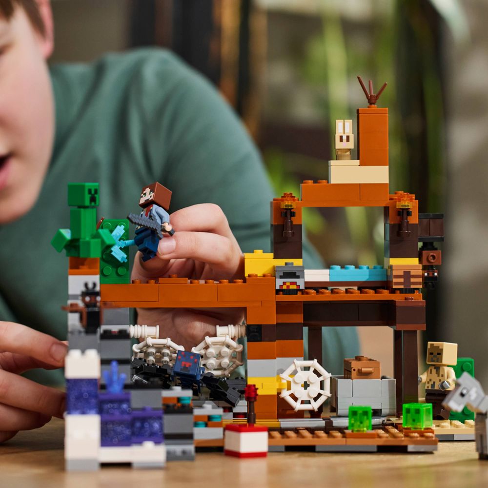 Brinquedo de mineração infantil – Situado em uma mina abandonada com figuras do Minecraft®, The Badlands Mineshaft (21263) é um brinquedo de construção de videogame para meninos e meninas a partir de 8 anos