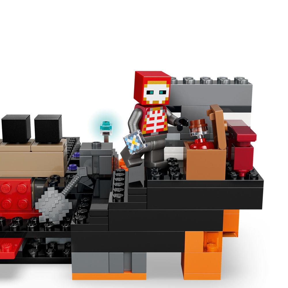 ACESSÓRIOS DE AÇÃO DE BATALHA – Uma mesa de trabalho, poção de cura, maça, 3 crânios de esqueleto Wither, um graveto com fungo deformado e uma preciosa estrela do Nether ajudam a inspirar a brincadeira imaginativa das crianças.