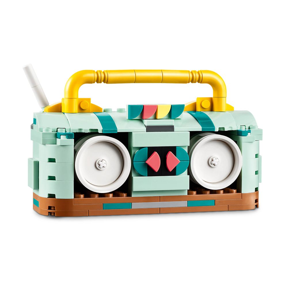 Este conjunto LEGO Creator 3 em 1 oferece às crianças 3 experiências diferentes de construir e brincar com o mesmo conjunto de peças. Eles podem construir um brinquedo de patins e reconstruí-lo em um mini skate retrô colorido com 4 rodas móveis ou em um rádio boom box retrô com uma pequena antena. Todos os 3 modelos são itens de exibição atraentes para as crianças após suas aventuras de brincadeira.