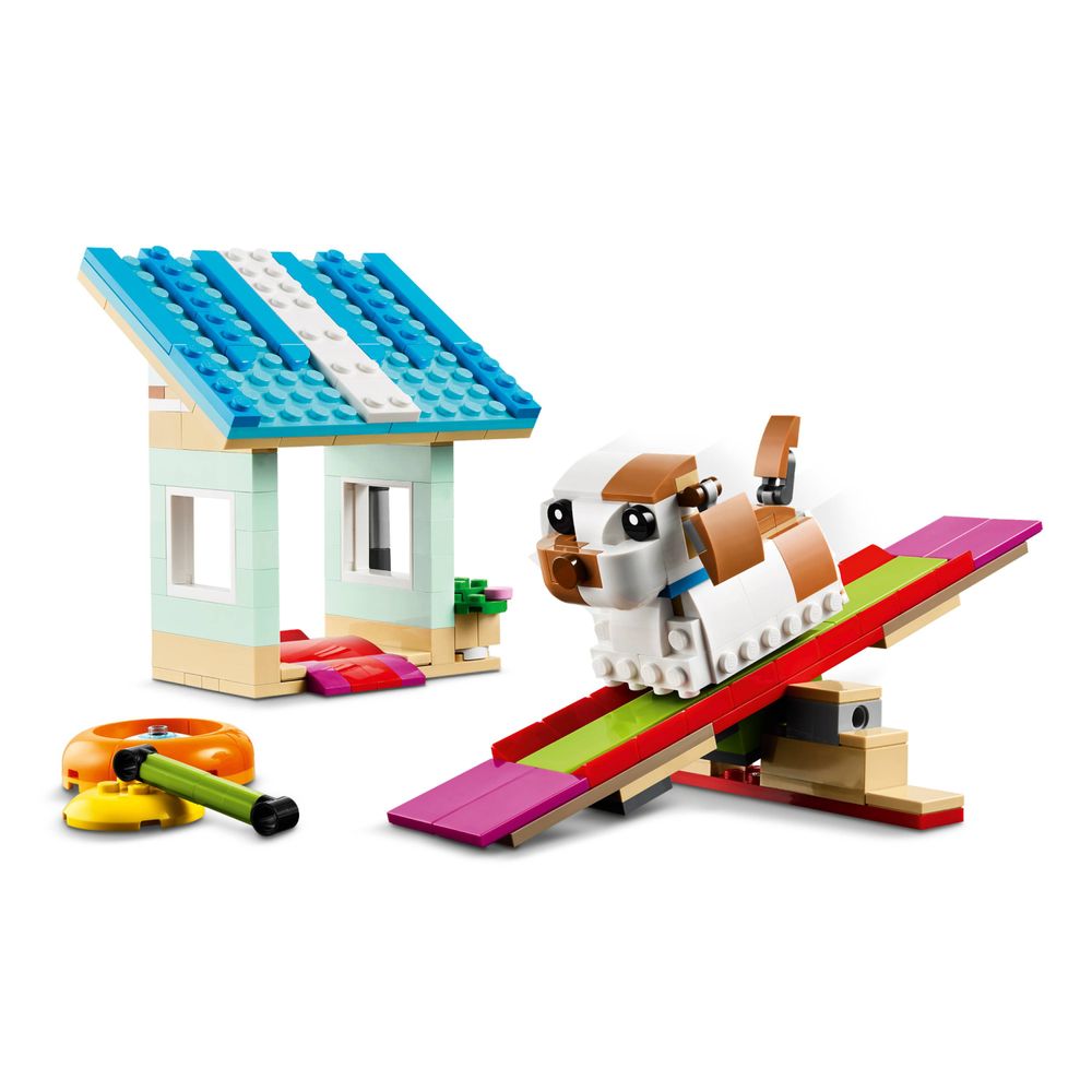 Este conjunto LEGO® Creator oferece às crianças 3 brinquedos pequenos de animais diferentes para construir usando as mesmas peças. Eles podem construir uma casinha de brinquedo para hamster, transformá-la em uma área de recreação para um gato com uma roca e um skate ou uma casinha de cachorro onde um cachorro pode deslizar por uma rampa e brincar com brinquedos legais.