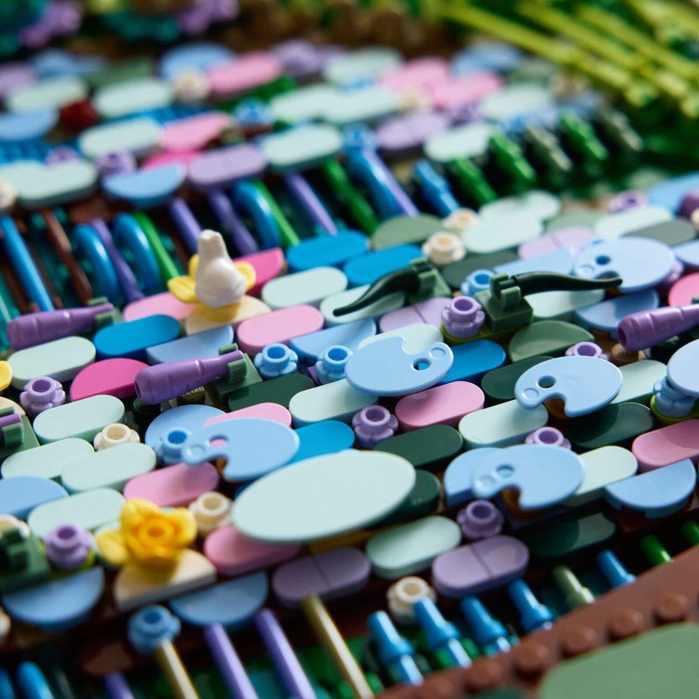 ARTE DE PAREDE IMPRESSIONISTA – Mergulhe em uma construção divertida que utiliza de forma criativa elementos LEGO® consagrados, como borboletas, cerejas, bananas, espadas e escudos, para recriar a obra-prima de Monet.