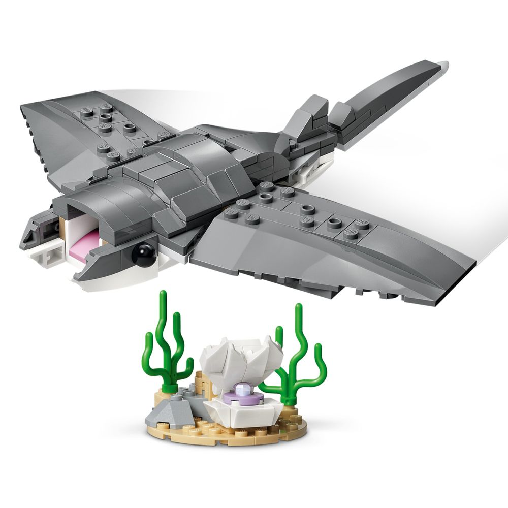 OPÇÕES INFINITAS DE BRINCADEIRAS DE FAZ DE CONTA – As crianças podem se divertir com histórias incríveis e 3 brinquedos de criaturas marinhas (os modelos não podem ser montados simultaneamente): um tubarão com um baú do tesouro, um peixe-diabo ou uma arraia-manta.