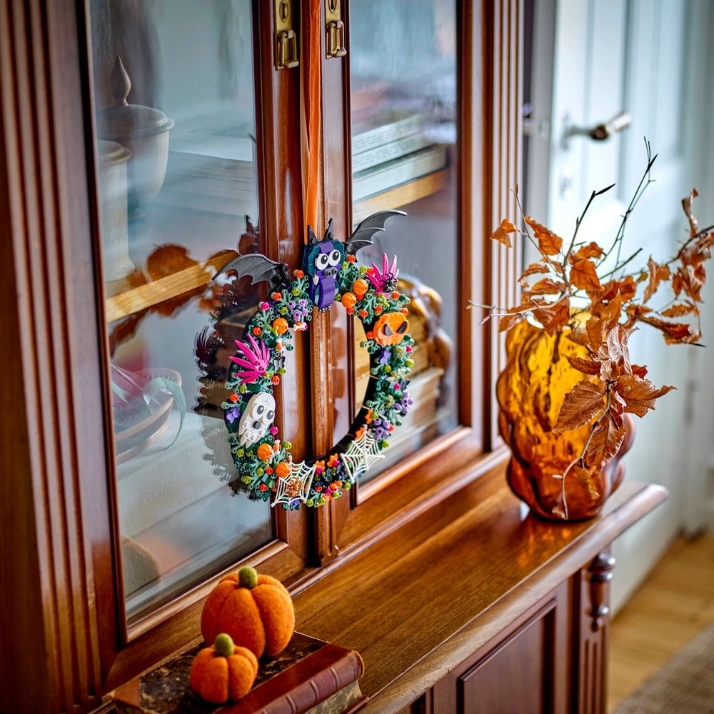 Medidas – A guirlanda de Halloween feita de tijolos de 617 peças mede mais de 29 cm de altura e 26 cm de largura