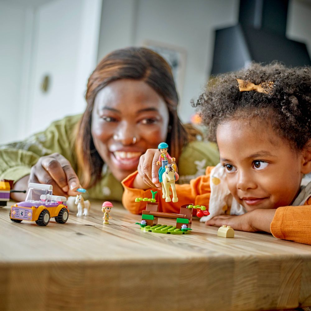 Este presente criativo com tema animal para crianças vem com um cavalo para Liann e um pônei para Zoya, além de acessórios de brinquedo para inspirar ideias de dramatização. As crianças podem ajudar os personagens a escovar os animais e prepará-los para um passeio. Na floresta eles encontram uma árvore caída, que é um obstáculo para o cavalo e o pônei pularem. Depois de um dia divertido cavalgando, os amigos recompensam os cavalos com uma saborosa cenoura.
