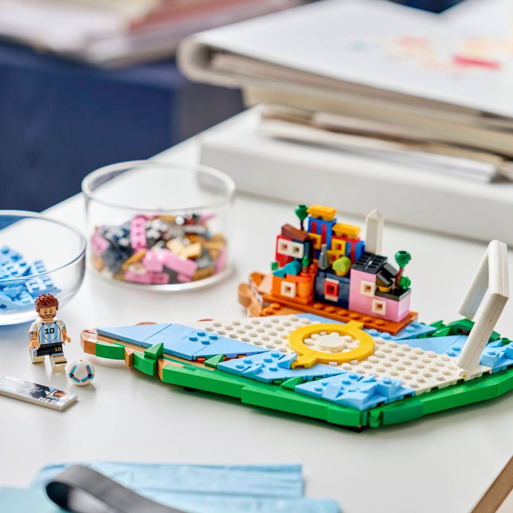 MINIFIGURA DE JOGADOR DE FUTEBOL LEGO® – Uma minifigura de Lionel Messi dá vida à cena e o conjunto inclui vários detalhes que fazem referência à sua história e carreira.