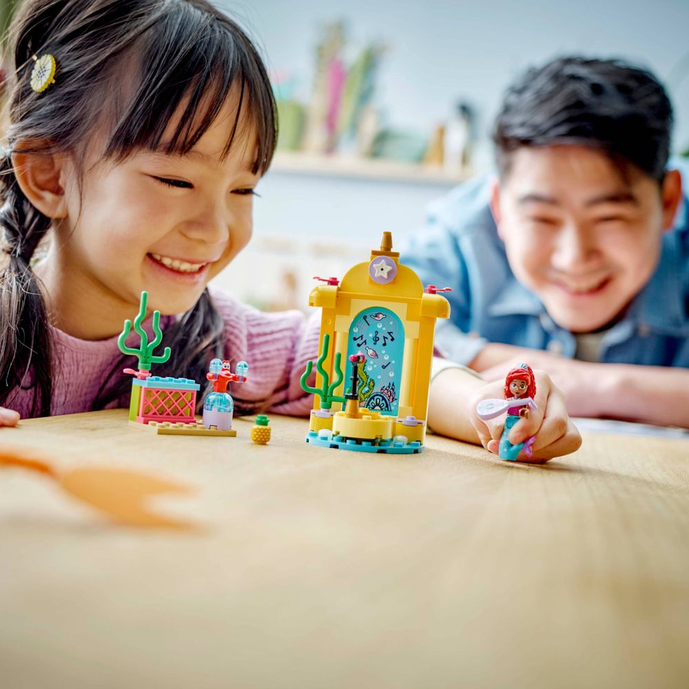 Este incrível conjunto de construção 4+ LEGO | Disney atende à paixão de uma criança pelos brinquedos para construir da Pequena Sereia, é fácil de levar para brincar e é uma ótima maneira para os adultos compartilharem a diversão de construção com os mais jovens.