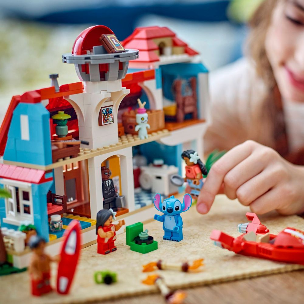 Conjunto de jogos montável – Contém uma casa montável com 6 cômodos e um observatório no terraço para a nave espacial, além de minifiguras LEGO® | Disney de Lilo, Stitch, Nani, David e Mr. Bubbles