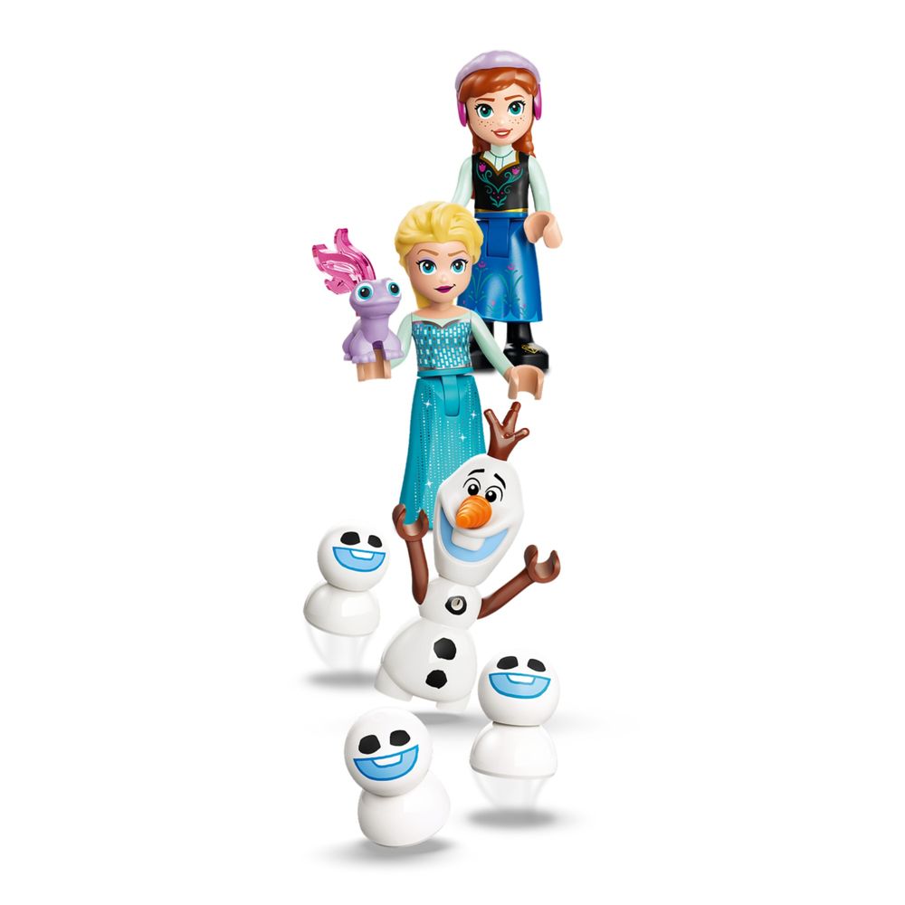 PERSONAGENS E FUNÇÕES – Com os personagens LEGO® | Disney Elsa, Anna, Olaf, Bruni e 3 Snowgies; o baú abre e os vagões do trenó deslizam nos trilhos, com espaço para qualquer um dos personagens.