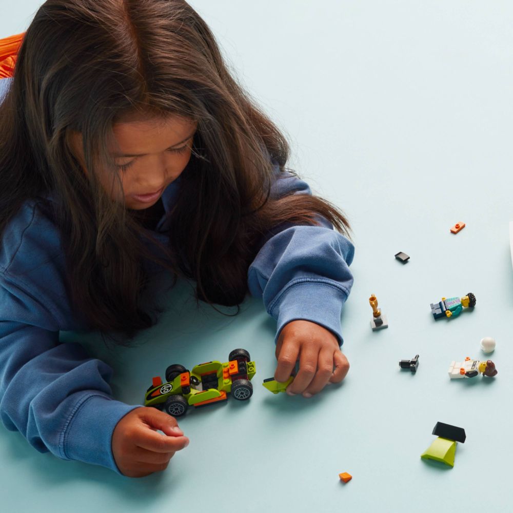 Brinquedo de carro de corrida para maiores de 4 anos – Deixe a diversão das corridas começar com o conjunto LEGO® City Carro de Corrida Verde, com um veículo de brinquedo montável para brincadeiras imaginativas