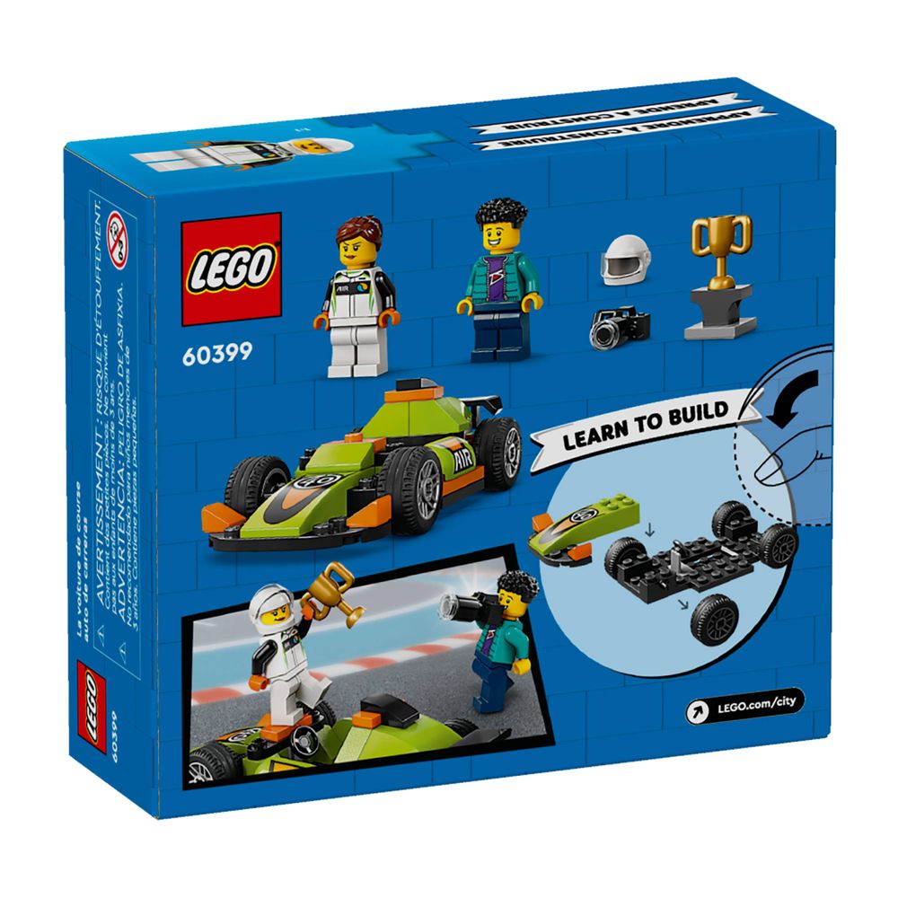 O Carro de Corrida Verde LEGO® City (60399) abre as portas para um mundo de brincadeiras criativas para crianças a partir de 4 anos. Prepare-se para torcer pelo seu pequeno piloto e abraçar a magia da brincadeira junto com este brinquedo de carro de corrida LEGO, com pneus esportivos e um spoiler traseiro incrível. Este conjunto também inclui minifiguras de fotógrafo e piloto de corrida, além de um troféu de vencedor para contar histórias imaginativas.