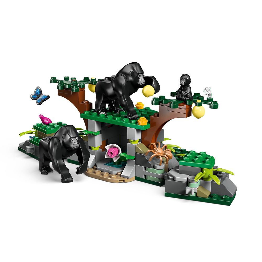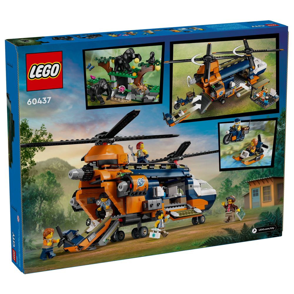 Ofereça ao seu pequeno explorador o conjunto de aventura LEGO® City Jungle Explorer Helicopter at Base Camp (60437) para maiores de 8 anos, apresentando um brinquedo de helicóptero realista com hélices duplas sincronizadas, 2 compartimentos de carga e um guincho funcional. O conjunto também inclui uma motocicleta, um barco do pântano e um acampamento base na selva, além de 5 minifiguras de aventureiros e 3 figuras de brinquedo de gorila, incluindo um bebê gorila, para brincadeiras imaginativas e contação de histórias.