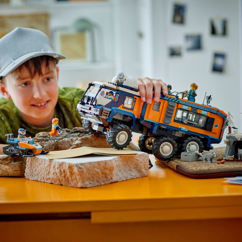 Presenteie seu aventureiro iniciante com o Caminhão de Laboratório Científico LEGO® City Arctic Explorer (60471) para fãs de brinquedos STEM a partir de 8 anos. Este conjunto realista apresenta um caminhão de brinquedo articulado com suspensão de 6 rodas, pneus de piso profundo e um observatório giratório no teto, além de detalhes internos incríveis, incluindo cabine de motorista, laboratório e uma aconchegante sala de estar com banheiro, cozinha e quarto. As crianças também ganham uma moto de neve de brinquedo e um cenário de caverna ártica, além de 5 minifiguras de exploradores e 3 figuras de animais lobo ártico, incluindo um filhote, para brincadeiras imaginativas.