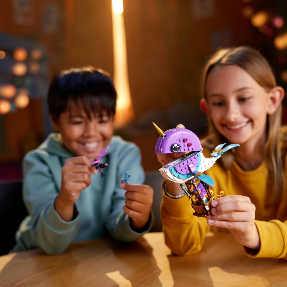 Uma figura de baleia transformadora – Meninas e meninos a partir de 7 anos liberam sua imaginação com este brinquedo LEGO® DREAMZzz™ Izzie’s Narwhal Hot-Air Balloon, que oferece às crianças 2 opções de construção