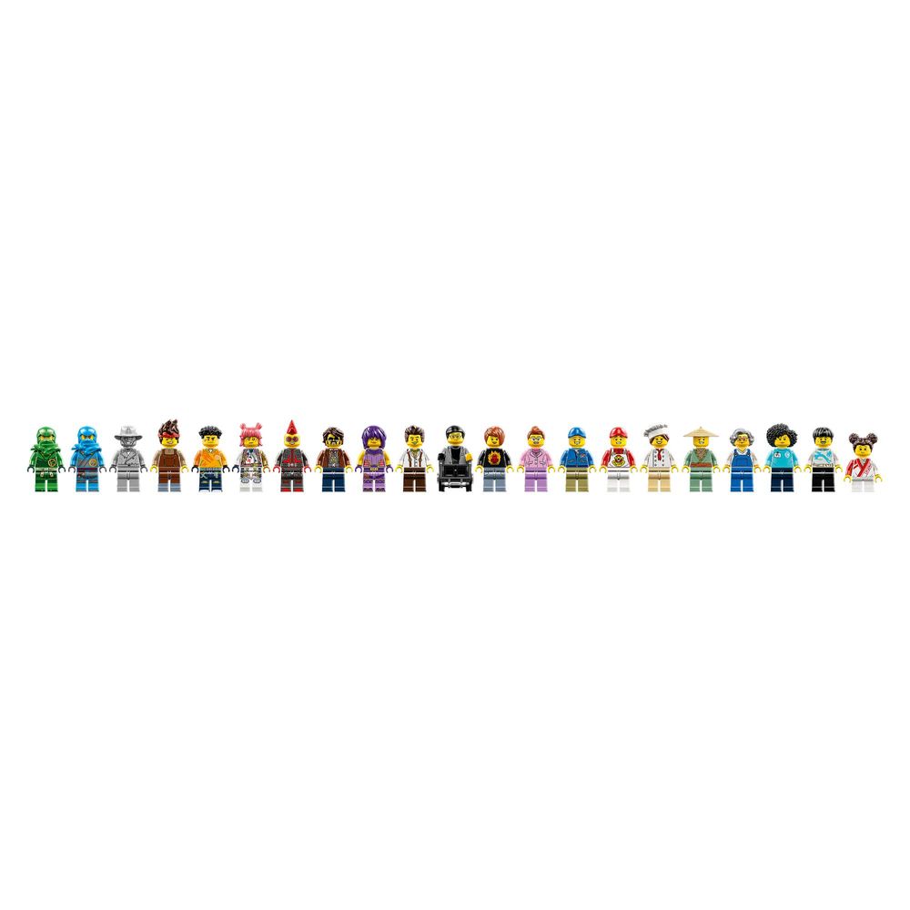 Há algo para fãs de NINJAGO de todas as idades neste incrível conjunto, incluindo uma padaria, um ferreiro, uma mercearia, a loja de Borg, barracas de mercado, uma praça de alimentação no terraço e um clube de karaokê com mesa de sinuca e palco. O conjunto também contém 21 minifiguras, com muitos personagens favoritos dos fãs nunca antes vistos, as crianças podem viver a ação da série de TV NINJAGO Dragons Rising.