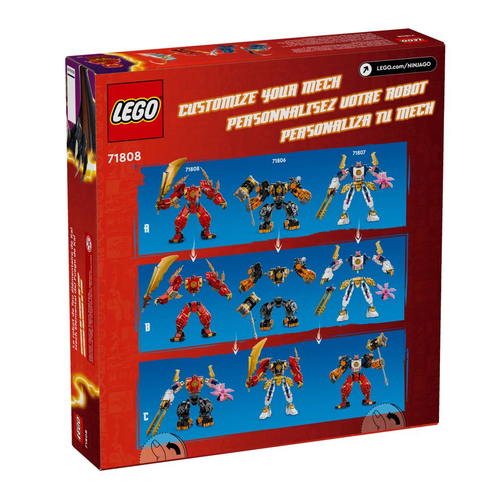 Mechs mais personalizáveis ??– As crianças podem trocar e combinar peças do mech de Kai com o Elemental Earth Mech de Cole (71806) e o Elemental Tech Mech de Sora (71807), que são vendidos separadamente