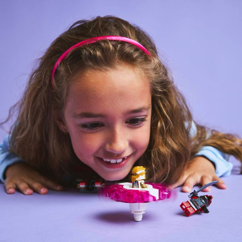 O brinquedo de ação Sora's Dragon Spinjitzu Spinner (71824) permite que meninos e meninas de 6 anos ou mais joguem uma ação incrível da temporada 3 do programa de TV NINJAGO® Dragons Rising. As crianças podem construir este pequeno conjunto LEGO® antes de apertar o botão do lançador para soltar o brinquedo Sora's Dragon Spinjitzu Spinner em um giro rápido e assistir a 2 elementos de poder possivelmente voando para longe quando ele atinge seu alvo.