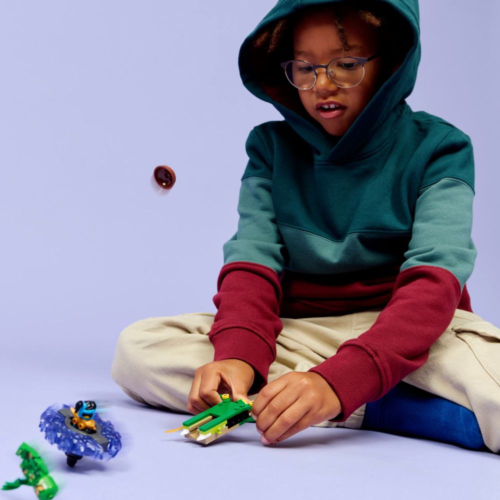 BRINQUEDO DE BATALHA – Meninos e meninas a partir de 6 anos podem recriar cenas da 4ª temporada da série de TV NINJAGO® Dragons Rising com este brinquedo ninja LEGO® NINJAGO Nya vs. Mutation Monster Spinner (71849).