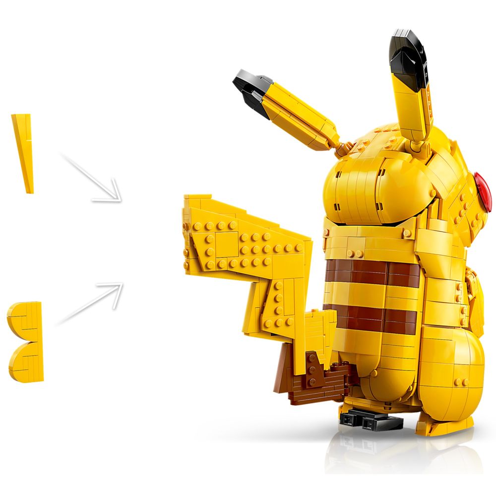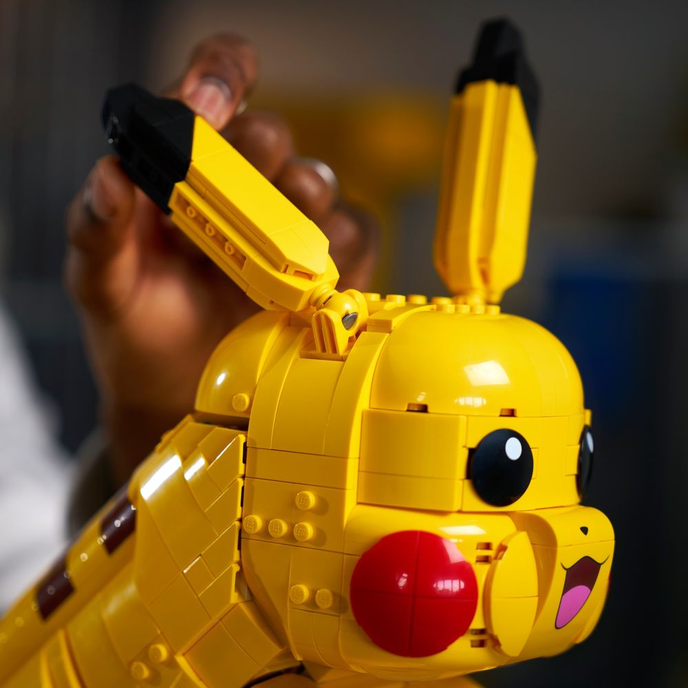 MODELO ICÔNICO DE POKÉMON – Esta figura LEGO® do Pikachu é instantaneamente reconhecível por seu corpo amarelo, bochechas vermelhas e cauda com relâmpagos, com a ponta em forma de coração ou achatada para indicar seu gênero.