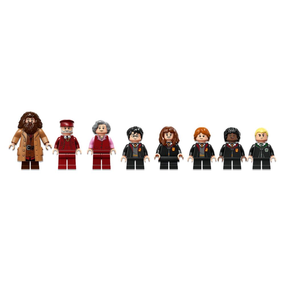 • 8 minifiguras – Harry Potter™, Ron Weasley™, Hermione Granger™, Draco Malfoy™, Lee Jordan, Rubeus Hagrid™, a Bruxa do Trolley e o condutor do trem, além de um elemento de álbum de fotos da família