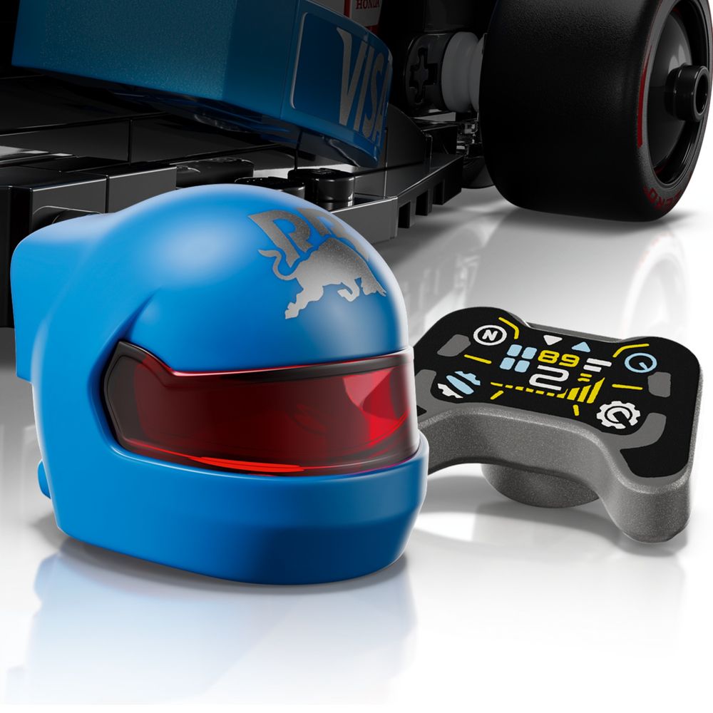 1 minifigura – O kit do veículo inclui uma minifigura de piloto vestindo uma roupa RB e um capacete alado para os construtores colocarem dentro do cockpit do carro de corrida de F1®
