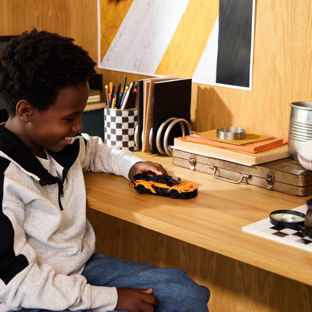 Ação em alta velocidade aguarda meninos e meninas a partir de 9 anos com esta réplica LEGO® Speed ??Champions do McLaren W1 – O Verdadeiro Supercarro (77257). As crianças podem construir, exibir e pilotar um elegante carro de corrida que inclui muitos detalhes de design famosos da versão real lançada para celebrar o 50º aniversário da primeira vitória da McLaren no Campeonato Mundial de Fórmula 1®. Este modelo de carro McLaren possui uma asa traseira ajustável para passeios ou corridas, motor traseiro, cockpit, tela de infoentretenimento e entradas de ar nas laterais e no capô. O brinquedo também inclui uma minifigura de piloto com uniforme da McLaren, capacete, peruca e chave inglesa, que também pode ser usada para aplicar adesivos e separar peças. Os conjuntos de construção LEGO Speed ??Champions são ótimas ideias de presentes para crianças e permitem que elas construam réplicas de uma ampla gama de veículos icônicos. Elas podem criar cada conjunto com confiança usando o aplicativo LEGO Builder – ampliar, girar em 3D e acompanhar o progresso com instruções digitais fáceis de seguir. O conjunto contém 287 peças.