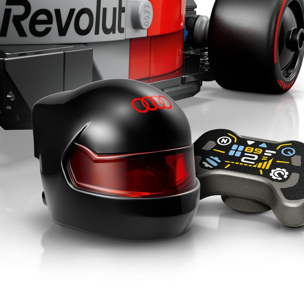 BRINQUEDO DE CARRO DE CORRIDA AUDI REVOLUT F1® TEAM – LEGO® Speed Champions Audi Revolut F1® Team R26 para fãs de carros a partir de 10 anos construírem, exibirem e encenarem a ação da Fórmula 1®.