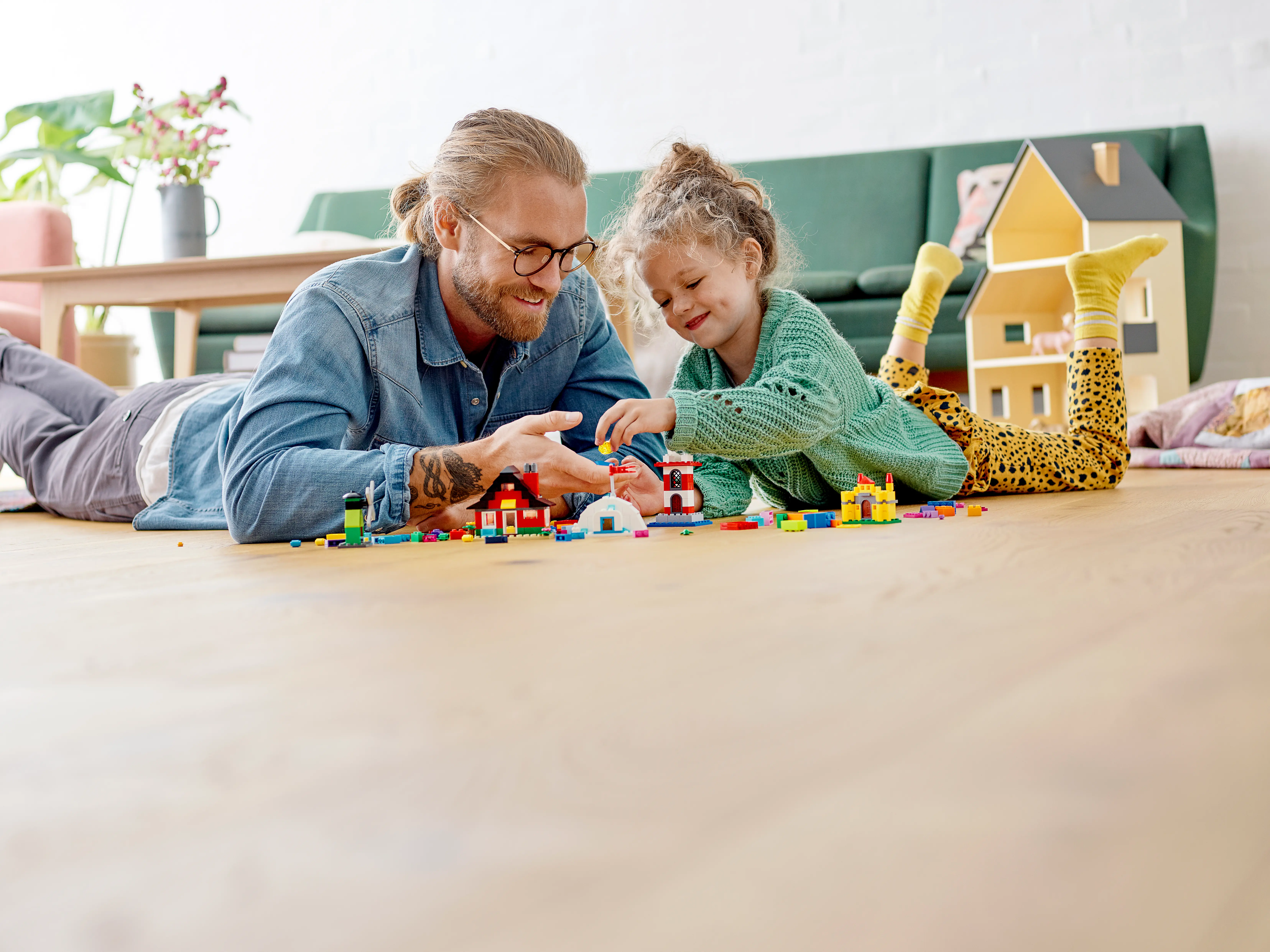 Trabalhar juntos para construir algo, seja um forte com travesseiros e caixas de papelão ou uma torre com peças LEGO® Classic, requer negociação, trabalho em equipe e compromisso. Você pode facilmente incentivar crianças de 4 anos ou mais a trabalharem juntas desafiando-as a construir a torre mais alta ou a cobra mais longa.