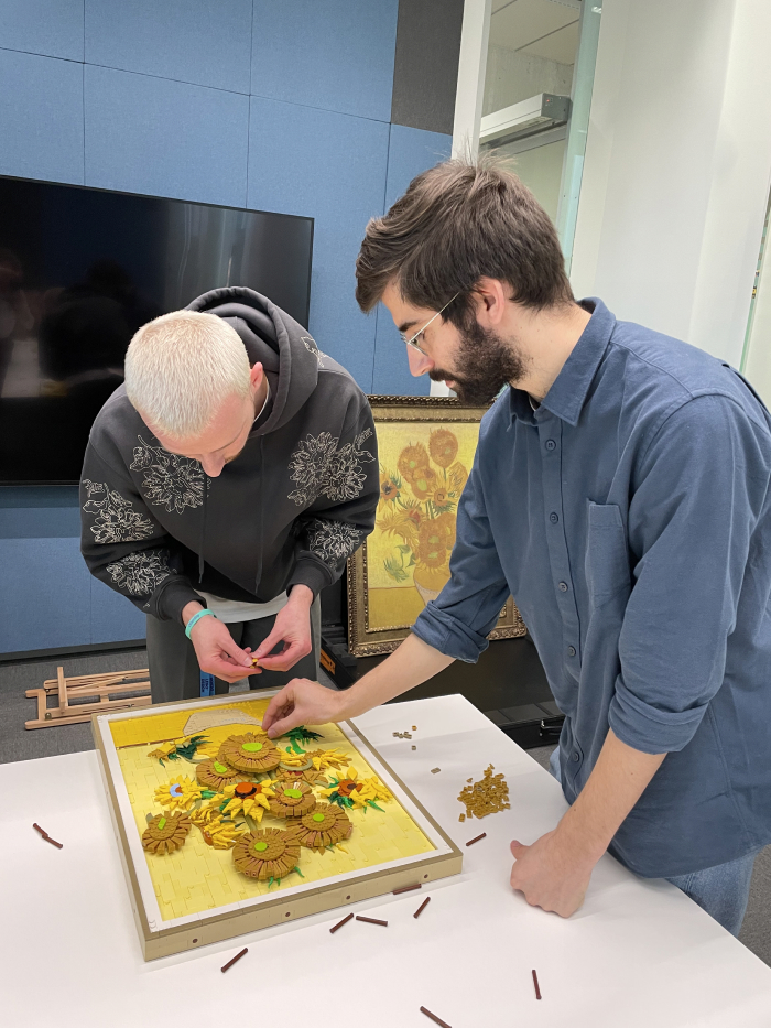 “Trabalhamos em conjunto com o Museu Van Gogh e seus especialistas, envolvendo-os no processo de design”, diz Stijn. “A conexão nos ajudou a elevar esse trabalho a um novo nível. Além de obter feedback detalhado e sugestões sobre como melhorar o modelo, eles também nos forneceram uma réplica 1:1 que foi enviada ao nosso escritório em Billund, Dinamarca. A réplica nos deu uma ótima percepção e nos ajudou a determinar as cores certas para usar no conjunto LEGO.”