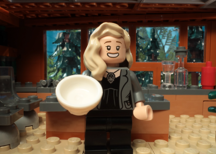 Mas assim como nos filmes, nossa minifigura Bella gosta de guardar uma pequena lembrança de casa por perto, na forma de seu cacto de estimação, trazido de Phoenix, Arizona.