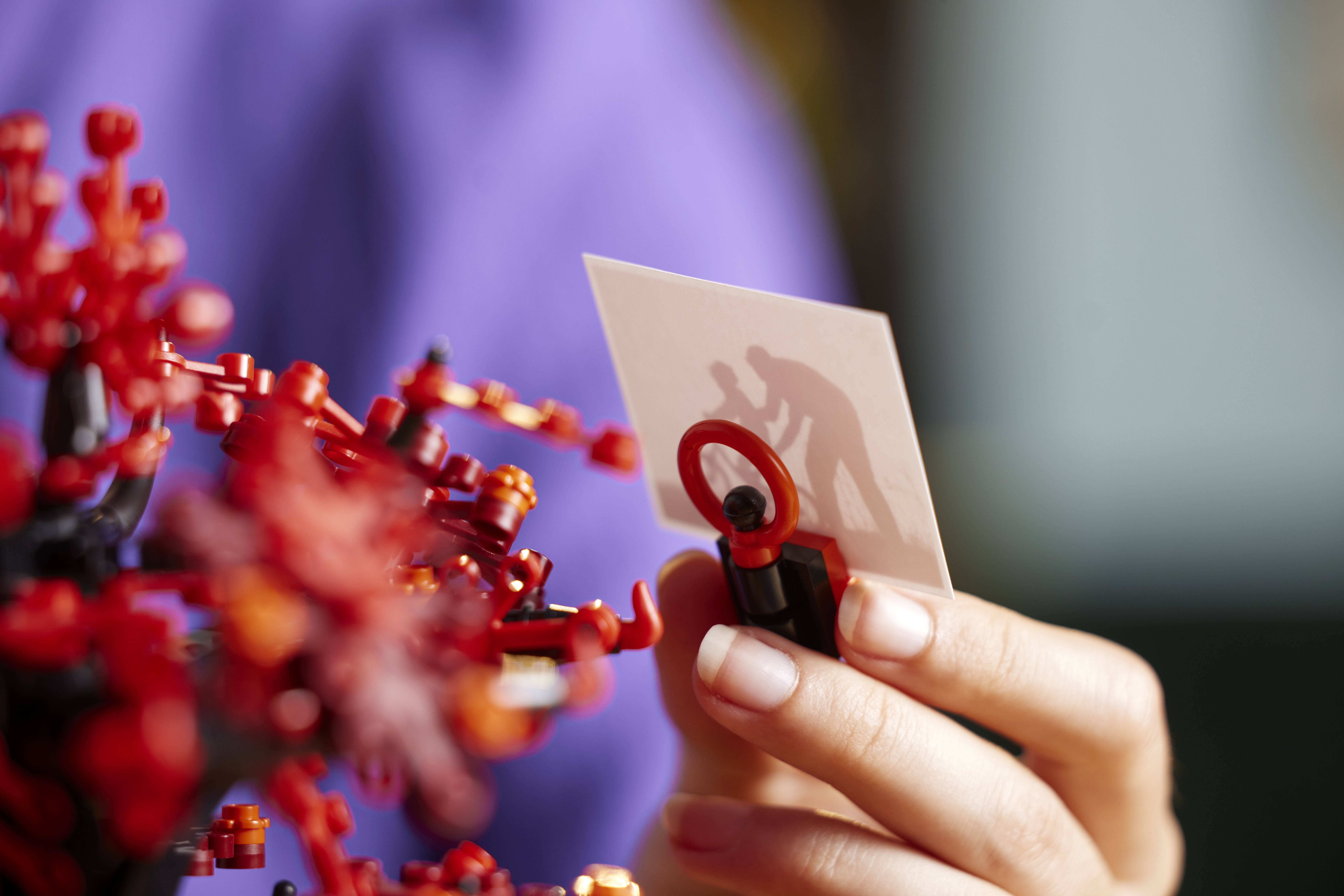 Primeiro você tem que construir sua árvore. Por que não tornar esta atividade uma atividade familiar e compartilhar o processo de construção? O conjunto inclui um livreto ilustrado com entrevistas com o fan designer do conjunto e os designers de LEGO, além de instruções para orientar cada passo desta relaxante atividade criativa.
