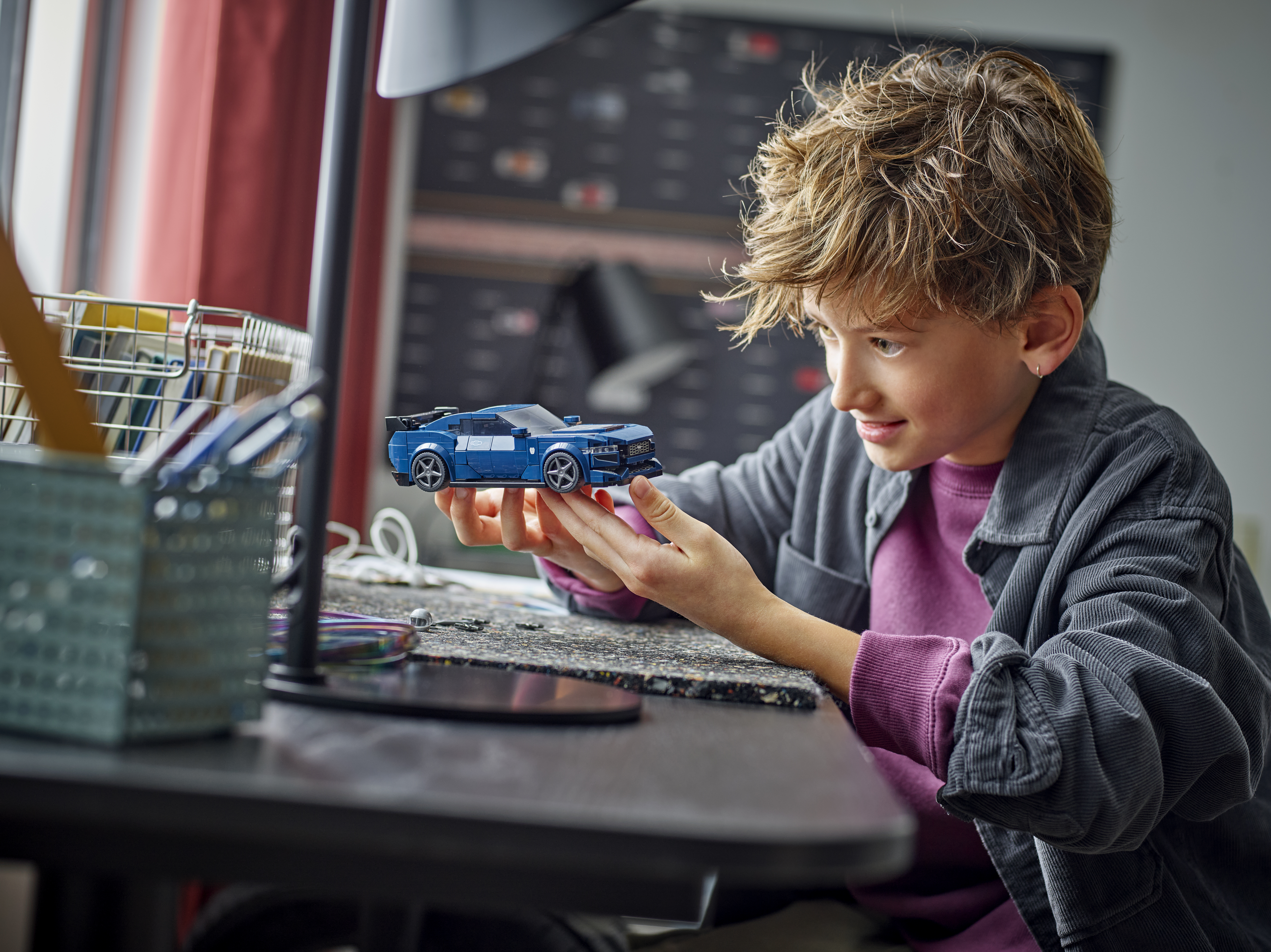 O presente perfeito para os entusiastas de automóveis, as crianças a partir dos 9 anos vão adorar colecionar, construir, brincar e exibir esta réplica icónica do carro de alto desempenho Ford Mustang Dark Horse.