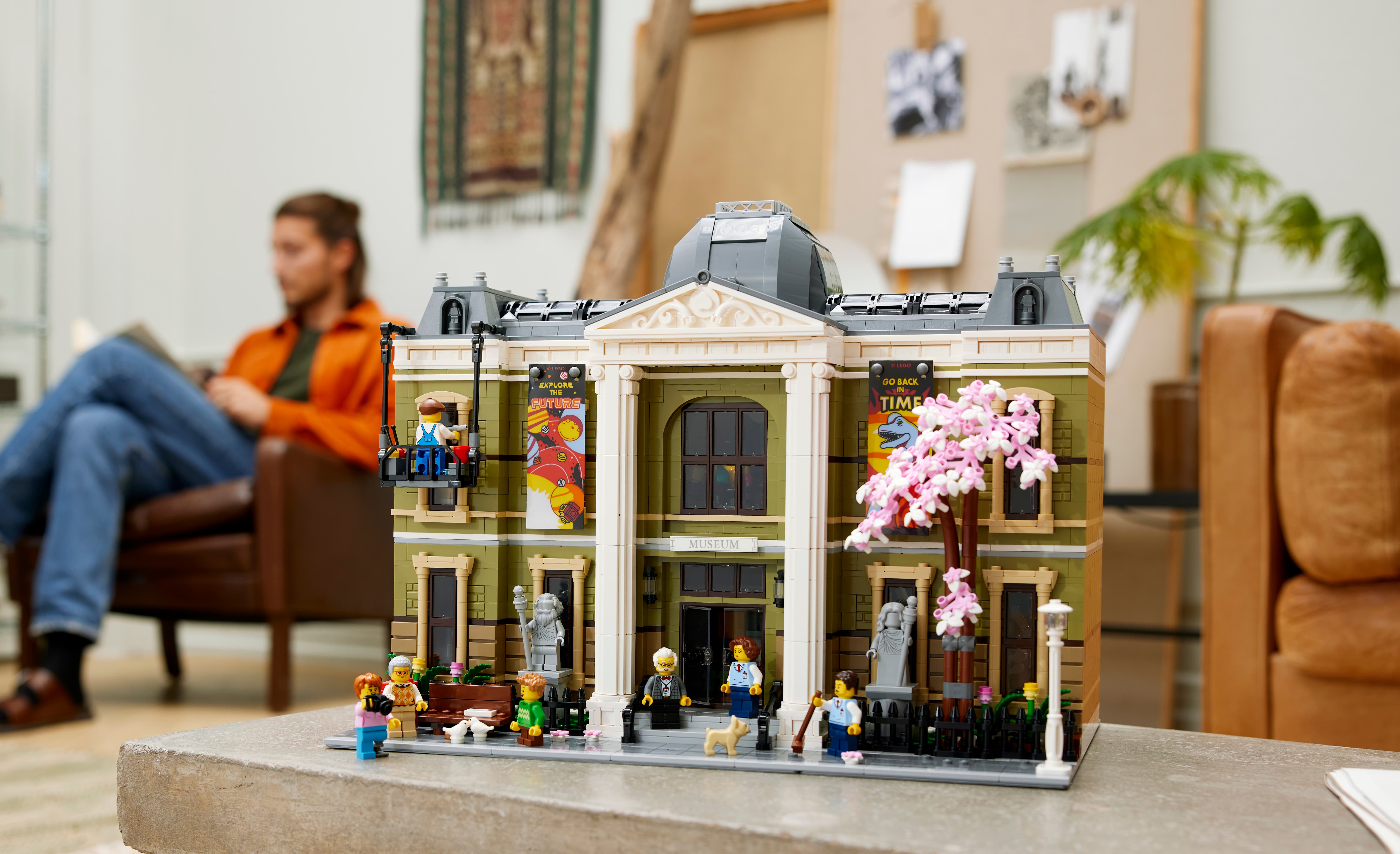 Assim como Londres tem o seu famoso museu de história natural, nós também temos. Mergulhe nas maravilhas da natureza enquanto constrói as três histórias. Em seguida, junte-se a sete minifiguras (e um cachorrinho brincalhão) para explorar sua criação. Um primeiro andar com exposições de história natural, um segundo com foco em artefatos espaciais e científicos e um terceiro com um escritório na cobertura.