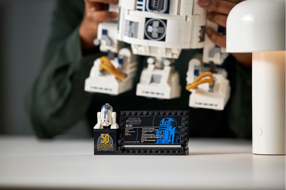 • Inclui um expositor edificável com uma placa de informações, uma figura droid LEGO® Star Wars ™ R2-D2 LEGO e um bloco de LEGO especial do 50º aniversário da Lucasfilm.